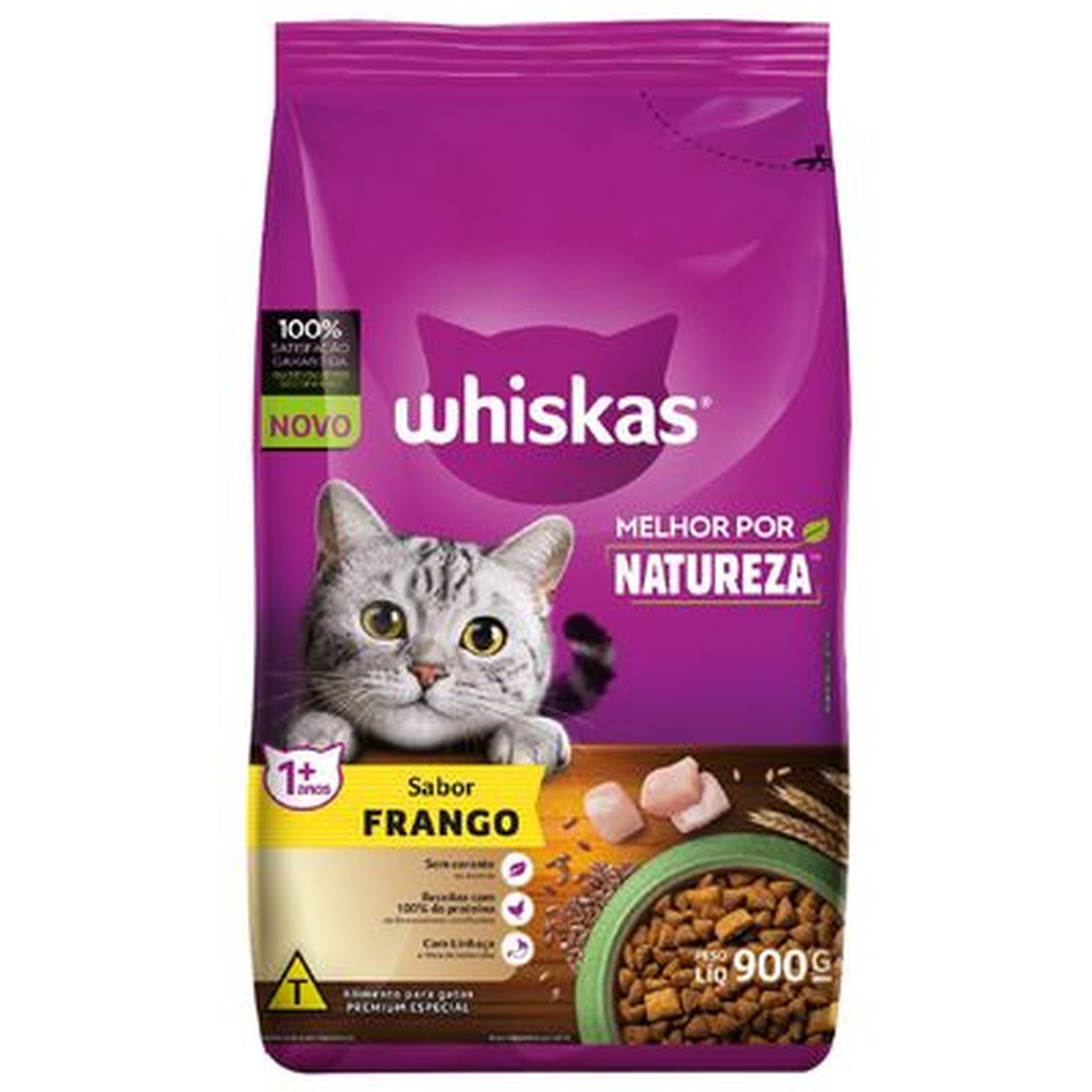 alimento para gatos adultos 1+ frango whiskas melhor por natureza pacote 900g